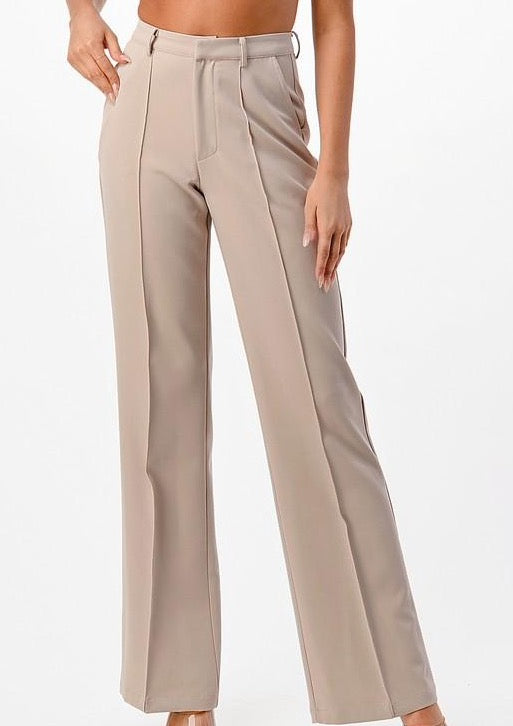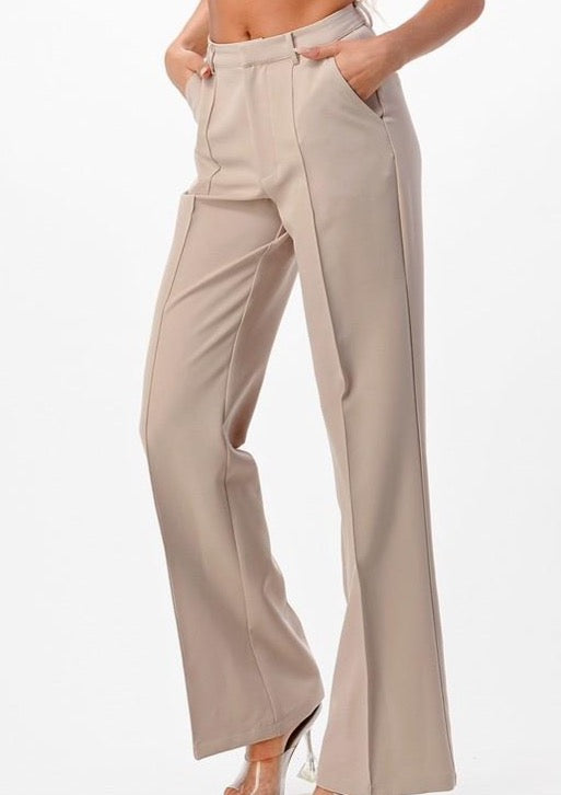 These wide leg pants are a must-have for your new season wardrobe. Featuring stretched woven material with pocket detail, a seam front and a wide leg fit. Matching set with our Time's Up Blazer.