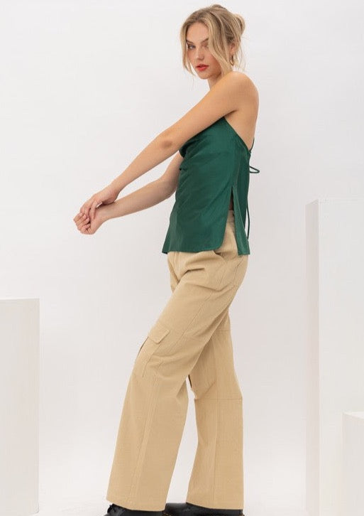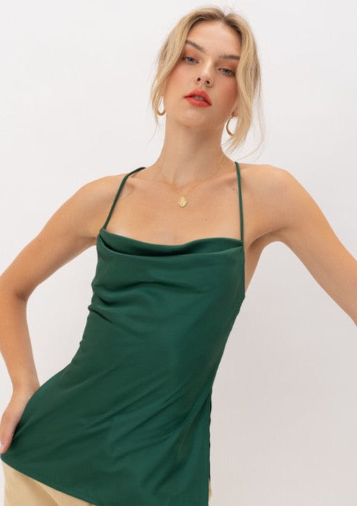 The Monroe Silk Top is our colorful fashion for fall. We are obsessing over the color Emerald and combining it with this silk open back top makes your outfit unique!