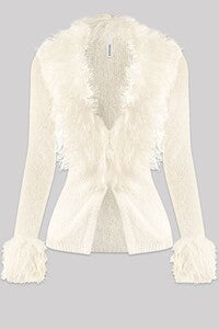 Stella Faux Fur Cardigan Elevate your layering game with this sophisticated cardigan, designed for effortless elegance. The front split creates a modern silhouette while the hook and eye closure ensures a polished fit. Luxurious faux fur trim frames the neckline and cuffs, adding texture and visual interest without the weight. Crafted from soft, stretchy fabric, it moves with your body for all-day comfort—perfect for transitional seasons or layering over your favorite pieces. Unlined construction keeps the piece lightweight and breathable, making it an essential addition to any refined wardrobe.