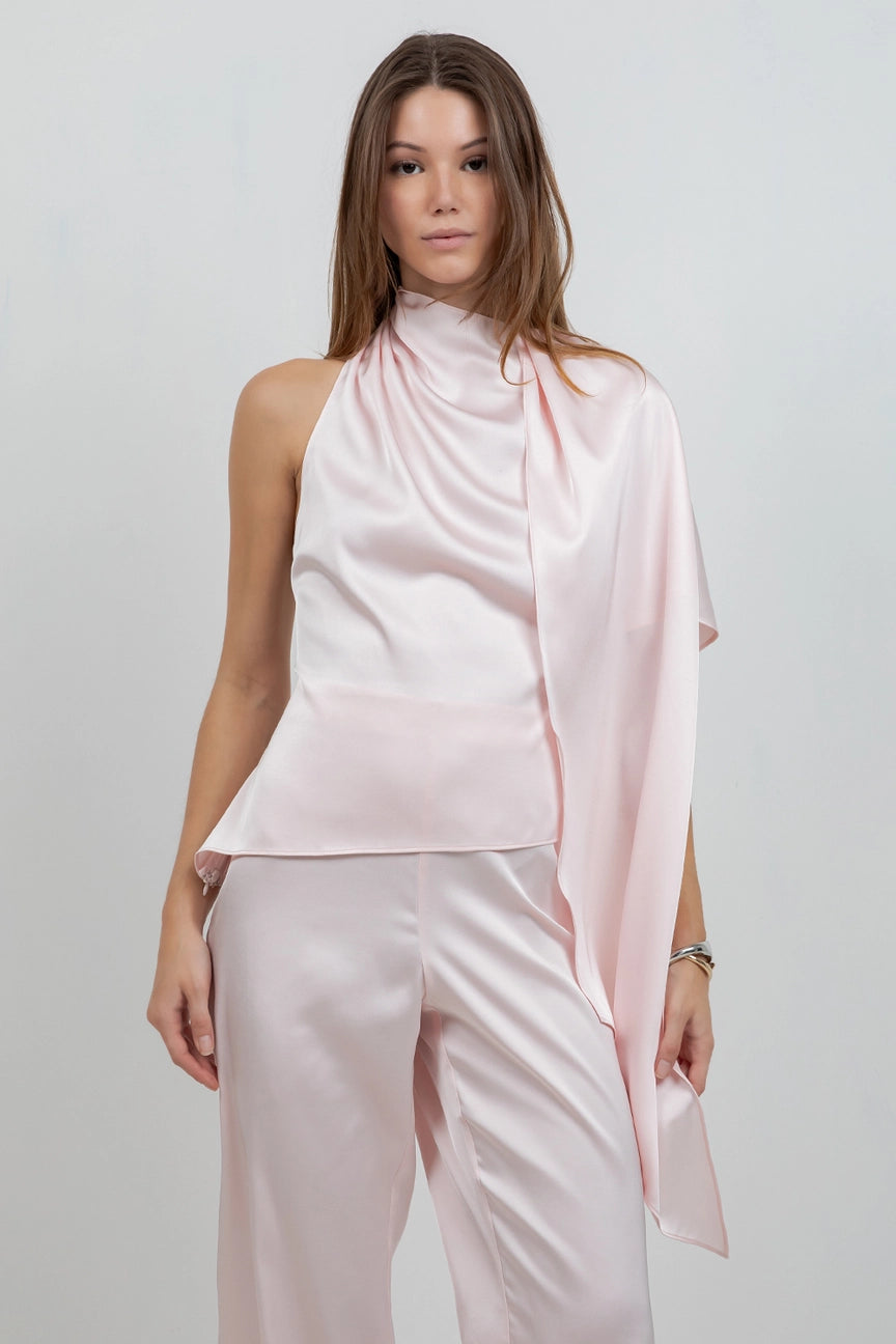 Elevate your spring and summer wardrobe with the Vivienne One Shoulder Asymmetrical Top, a sophisticated piece that balances architectural design with effortless elegance. The asymmetrical silhouette and integrated self scarf create a refined, editorial aesthetic—perfect for layering or wearing solo. Crafted from premium materials, this versatile top pairs seamlessly with the Vivienne Silk Pants for a polished, coordinated look that transitions from day to evening with understated confidence.