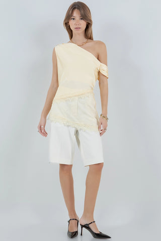 Elsie Asymmetrical One Shoulder Satin Lace Mix Top