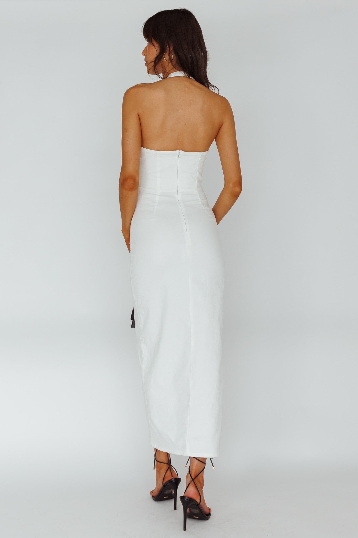 Introducing the Eloise Halterneck Button "Down Dress - a stylish and versatile midi dress that will elevate your wardrobe. Featuring a halterneck design and functional button down detailing, this dress offers both comfort and sophistication. Perfect for any occasion, this dress is a must-have for any fashion-forward individual.