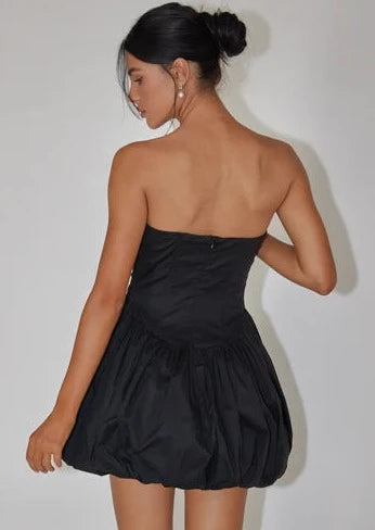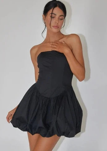 Introducing the Montana Strapless Bubble Hem Mini Dress. Made for comfort and style, this strapless dress boasts a flattering bubble hem and a mini length perfect for any occasion. Expertly crafted with the finest materials, it's sure to make a statement at any event.