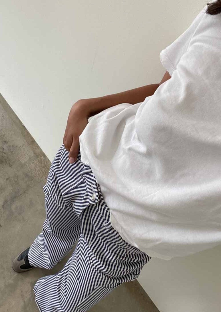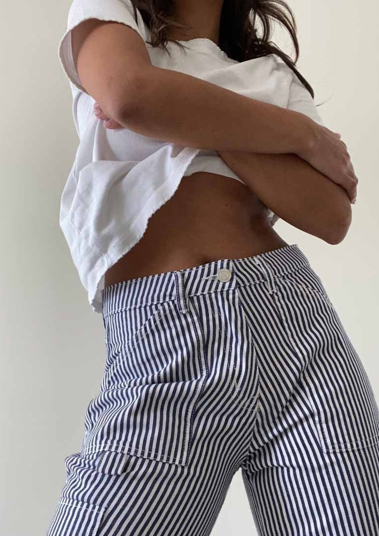 THIN STRIPE DENIM POCKET CARGO PANTS