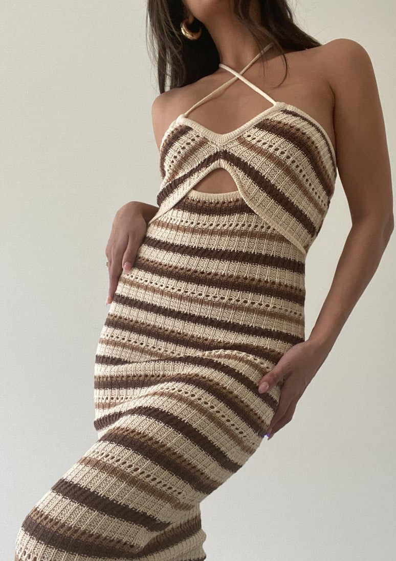 Look beautiful and feel comfortable in the Giselle Crochet Knit Dress. This halter dress is made from luxurious crochet knit fabric with a flattering fit. Enjoy all-day comfort with the lightweight, breathable design. Style with your favorite accessories for a timeless look.