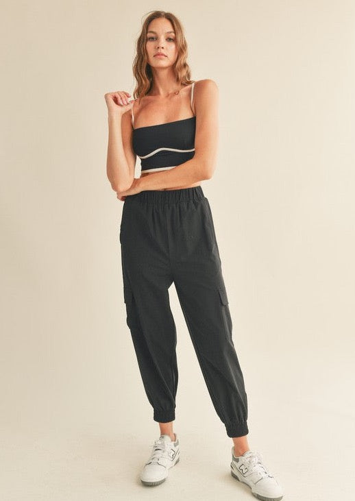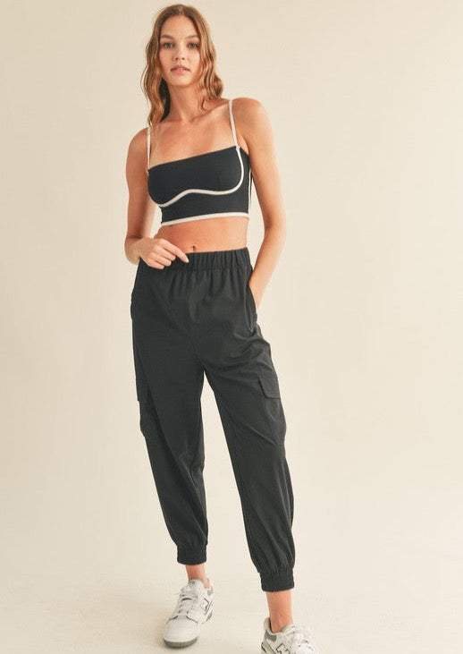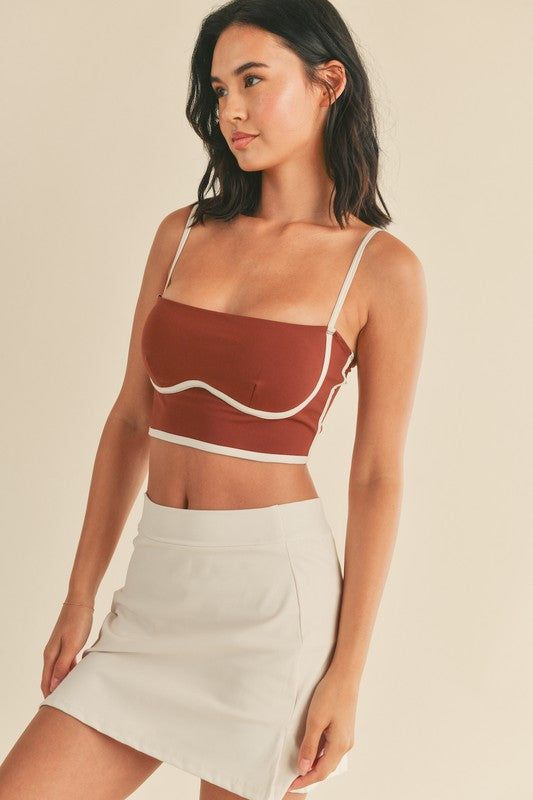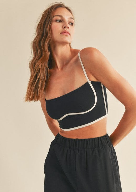 Built in shelf bra gives light to medium support with piping detail and adjustable straps HPS S- 13" M- 13.25" L- 13.5"