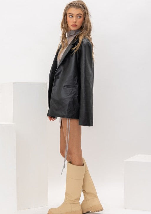 The Staten Island Leather jacket is the perfect seasonal transition! This jacket consists of a blazer fitted style making your outfit timeless.